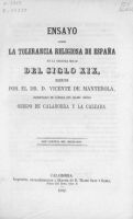 | Título: | Ensayo sobre la tolerancia religiosa de España en la segunda mitad del siglo XIX / escrito por el Dr Vicente de Manterola. |