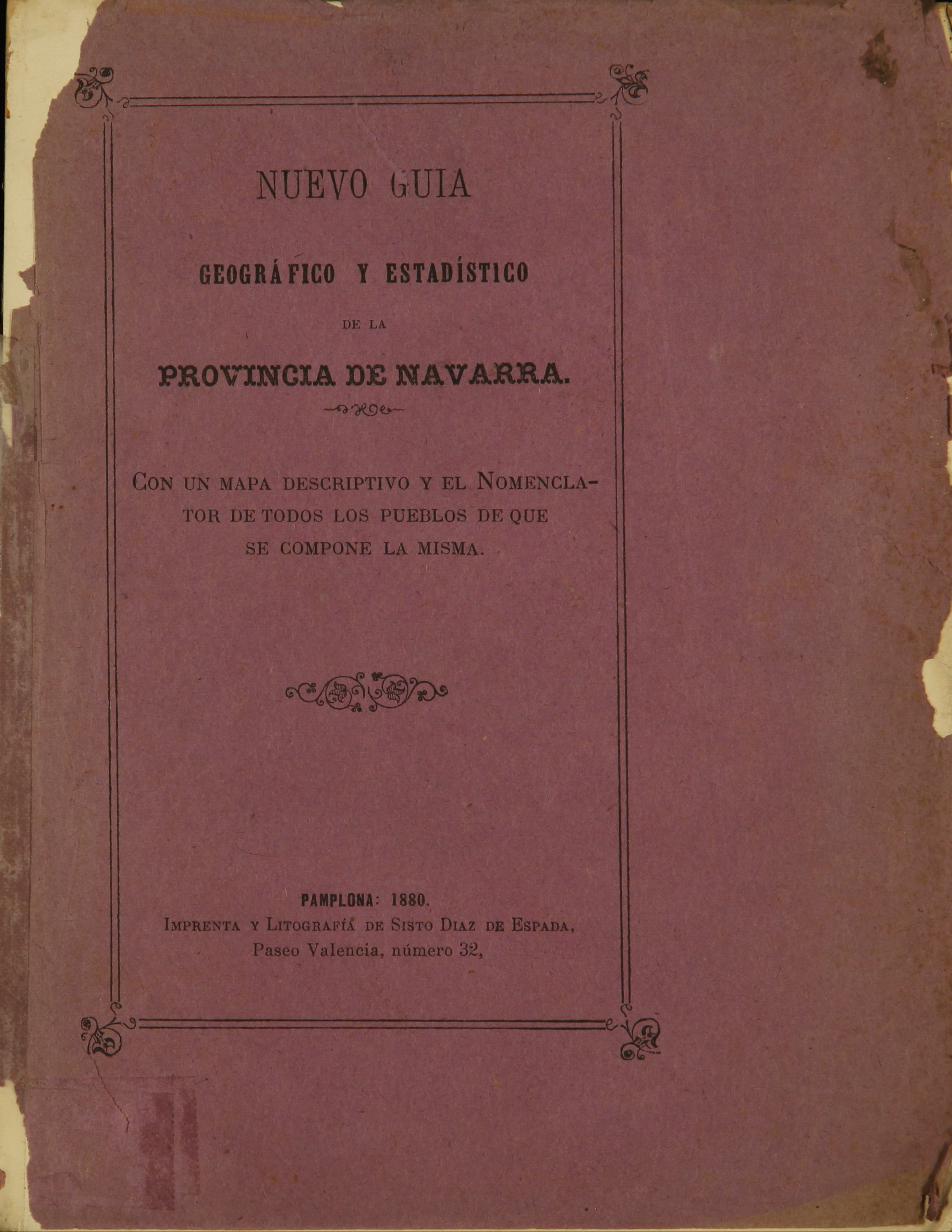 | Título: | Nuevo guía geográfico y estadístico de la provincia de Navarra : con un mapa descriptivo y el nomemclator [sic] de todos los pueblos de que se compone la misma. |