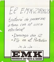 Título: El EMK-Zirkus tratará de ponerse a tono con el circo electoral [Material gráfico] : domingo día 12, 7½ en El Portalón : ja,ja,ja__ : EMK Movimiento Comunista de Euskadi