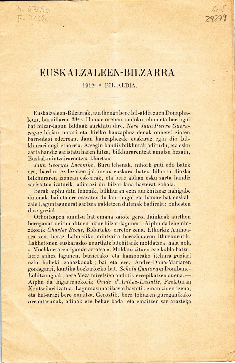 | Resumen: | Dialecto : texto en euskera central -- guipuzcoano S. XX -- Periodo : último euskera moderno Euskalkia : erdialdekoa -- gipuzkera XX. md. -- Aroa : azken euskara modernoa Digitalización Vitoria-Gasteiz Fundación Sancho el Sabio 2008 Rústica |