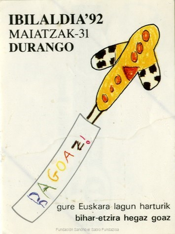 Título: Ibilaldia ’92 : Maiatzak – 31 : Durango : Bagoaz ! : Gure euskara lagun harturik : Bihar – etzira hegaz goaz