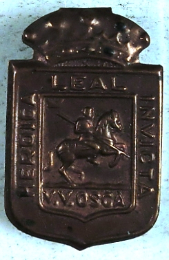 | Resumen: | Insignia del Auxilio Social, de cobre en forma de escudo sobremontado. A troquel lleva grabado: un jinete, laurea, y "heróica, leal, invicta, V.V. Osca. Hacia 1940. |