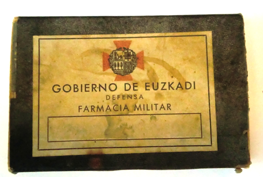 Resumen: Caja de ampollas de la Farmacia Militar del Departamento de Defensa del Gobierno vasco. En ficha manuscrita "Estuche de inyecciones, fórmula bronquinar de la farmacia militar del Gobierno de Euzkadi"