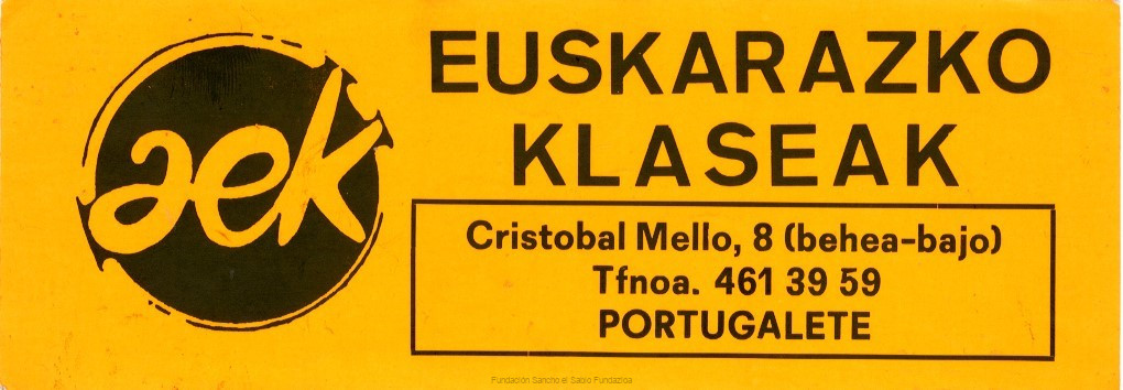 Título: Euskarazko klaseak : Cristobal Mello, 8 (behea = bajo) : Tfnoa. 461 39 59 : Portugalete