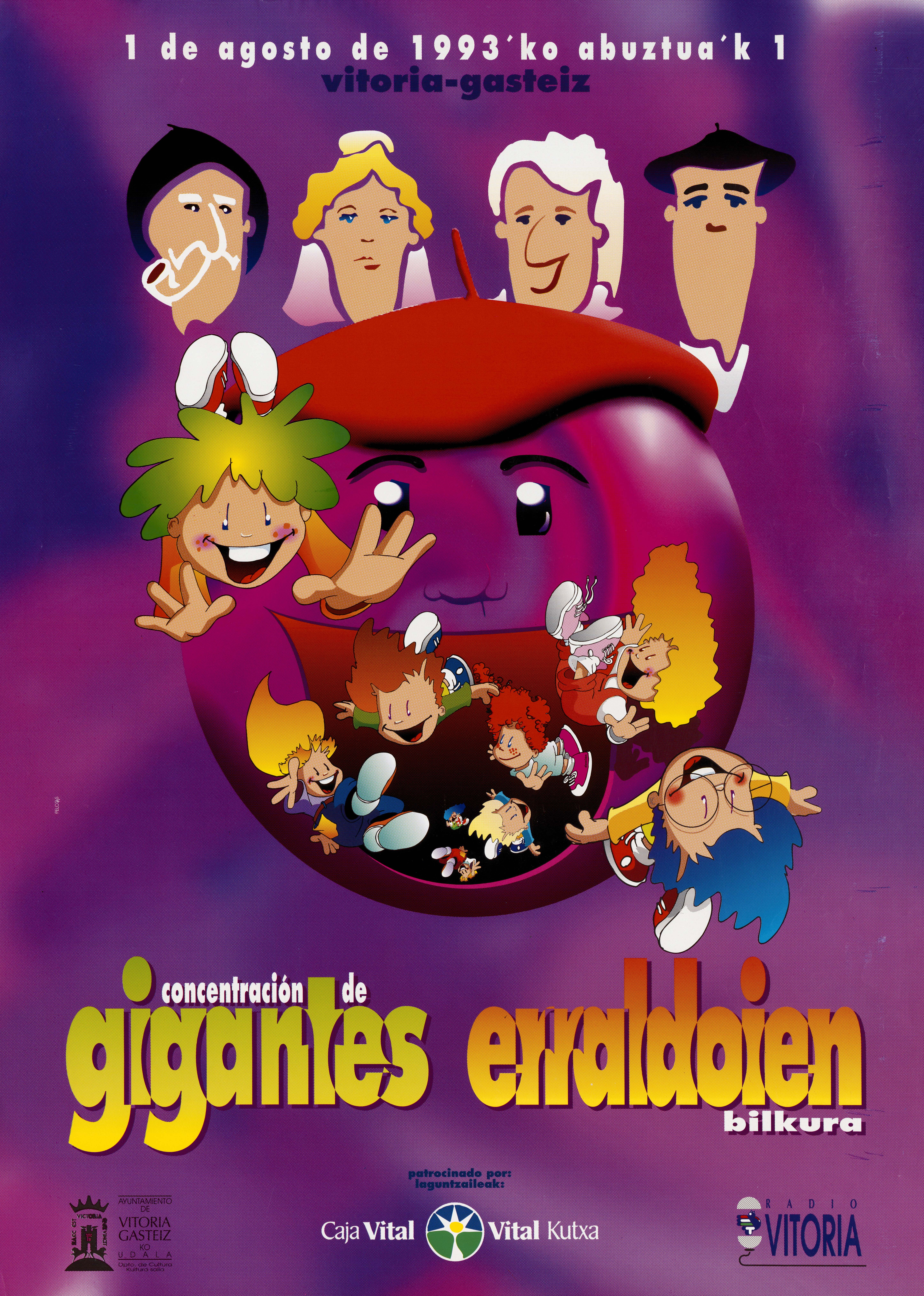 | Título: | Concentración de gigantes [Material gráfico] : 1 de agosto de 1993, Vitoria = Erraldoien bilkura : 1993'ko abuztuak 1, Gasteiz. |