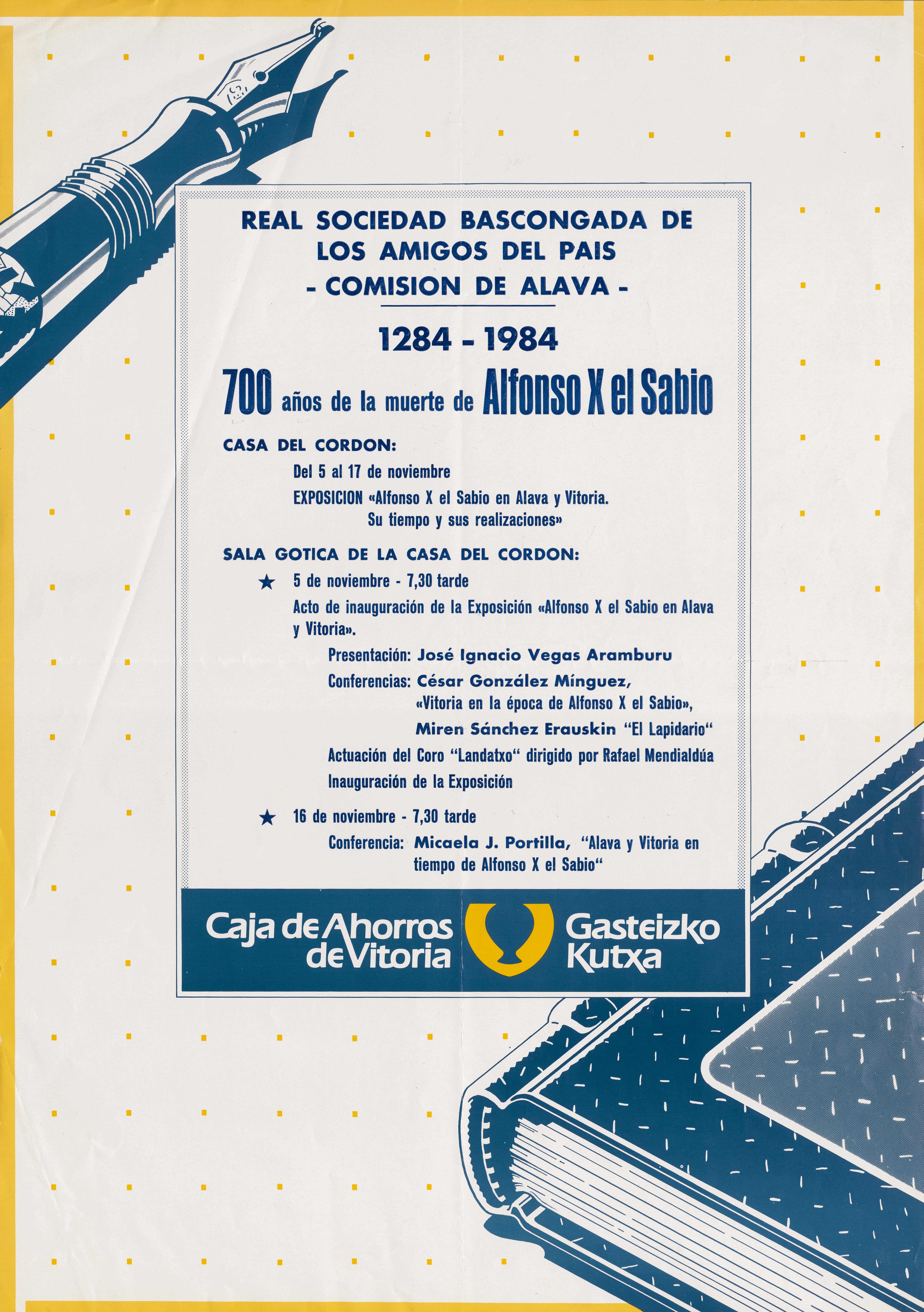 Izenburua: 1284-1984 [Material gráfico] : 700 años de la muerte de Alfonso X el Sabio : Real Sociedad Bascongada de los Amigos del País-Comisión de Álava.