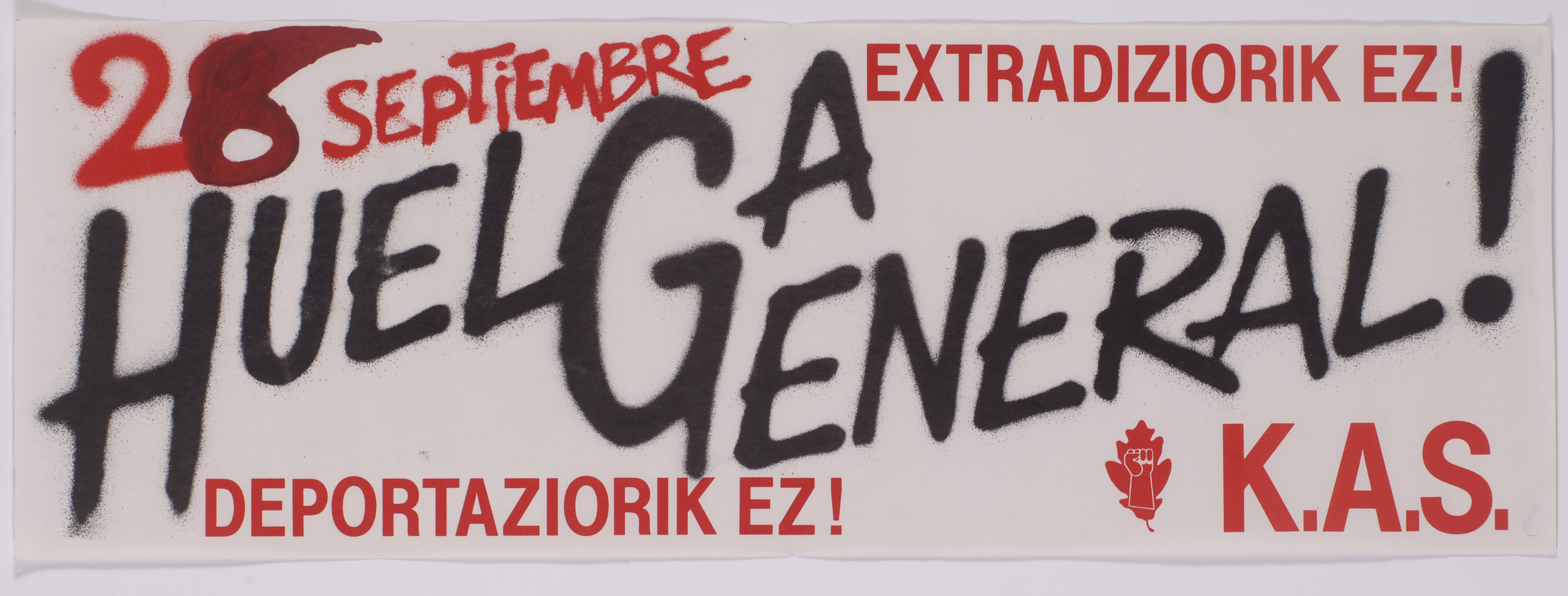 | Título: | ¡Huelga general! [Material gráfico] : extradiziorik ez! : deportaziorik ez! : 26 septiembre : K.A.S. |