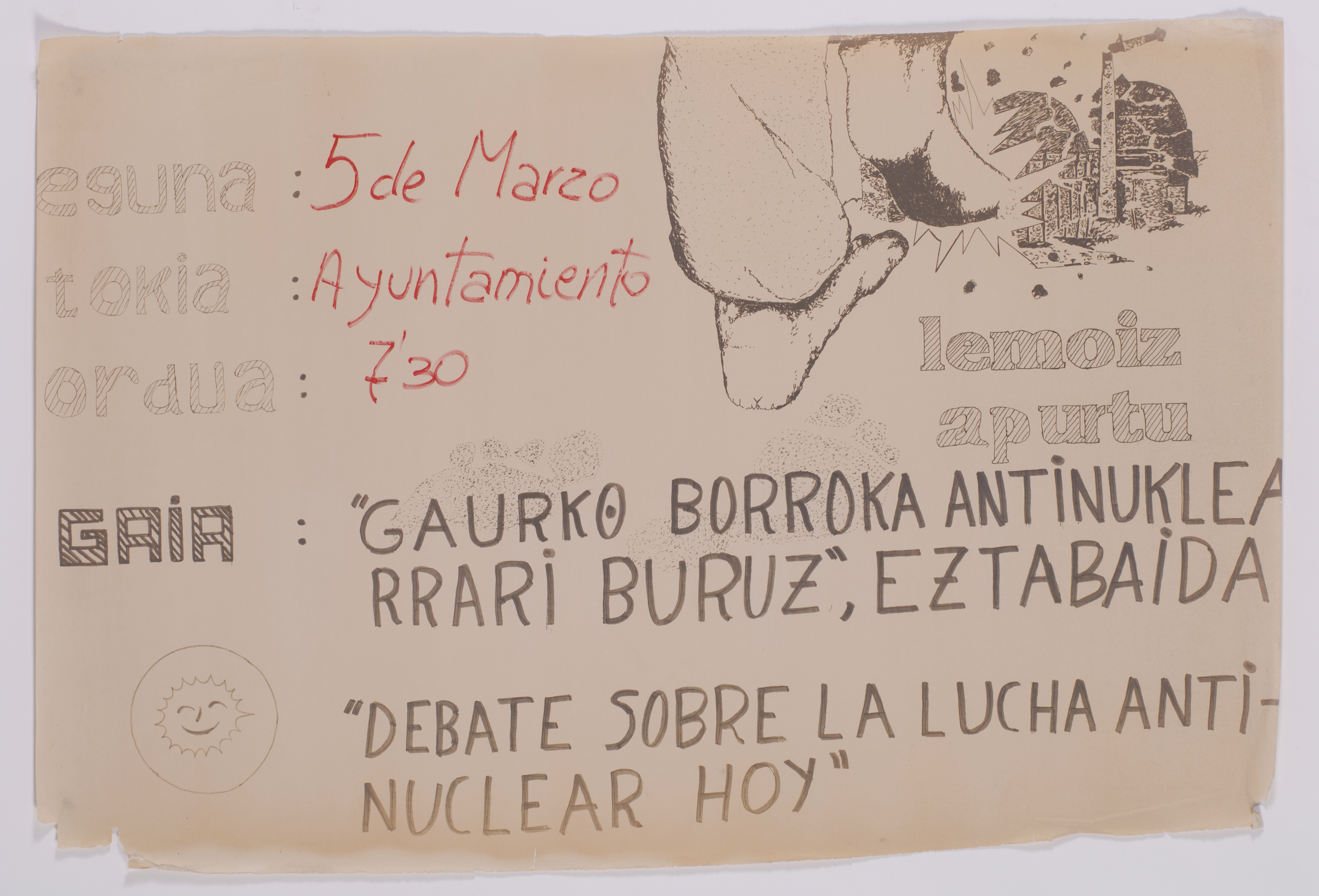 Título: Lemoiz apurtu [Material gráfico] : gaia, "gaurko borroka antinuklearrari buruz", eztabaida = "debate sobre la lucha anti-nuclear hoy" : eguna, 5 de marzo : tokia, Ayuntamiento : ordua, 7'30.