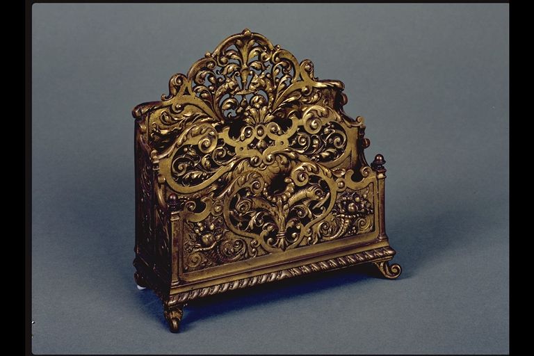 | Resumen: | Orfebrería Latón-Bronce Siglo XIX- XX Labora calada al estilo Renacimiento con 2 compartimentos |