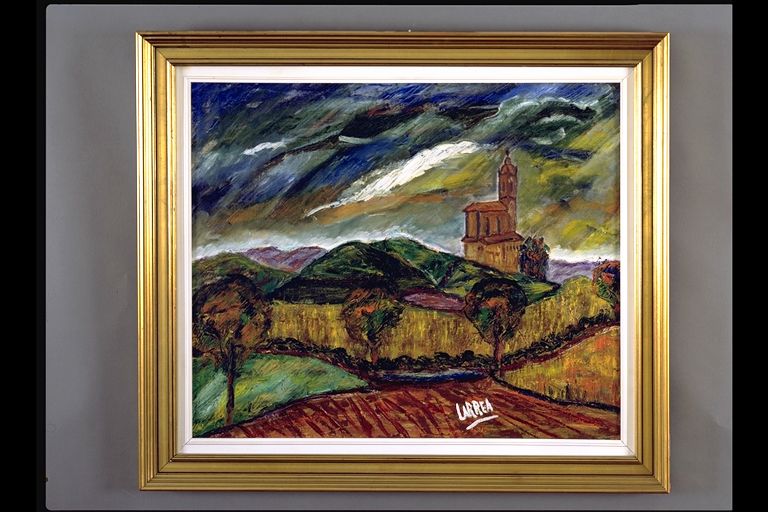 | Deskribapena: | Óleo Lienzo Paisaje rural con iglesia Firmado en zona central inferior |