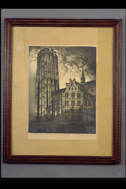 | Resumen: | Aguafuerte Calcográfia 1930 Grabado que representa la Catedral de Malinas.
