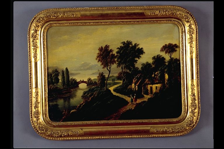 | Resumen: | Técnica: Óleo Materia-soporte: Lienzo Paisaje con río y personajes por el camino. |