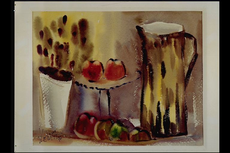| Deskribapena: | Exposición Técnica: Acuarela Materia-soporte: Papel Fecha de ejecución: 1976 Cerámicas y frutas. Firmado y fechado en ángulo inferior izquierdo. |
