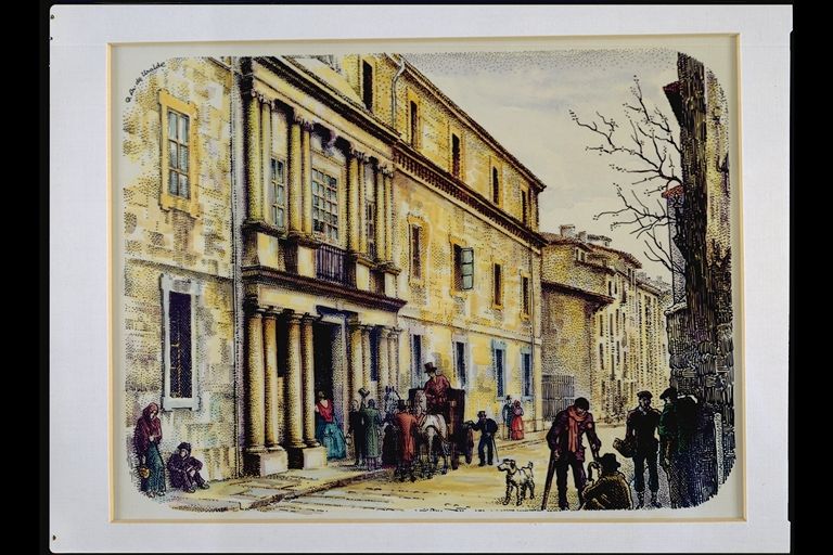 | Deskribapena: | Técnica: Reproducción Materia-soporte: Papel Escena callejera ante la fachada principal del hospicio de Vitoria, año 1850. Firmado en ángulo superior izquierdo. |