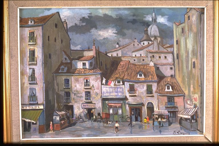 | Deskribapena: | Exposición Técnica: Óleo Materia-soporte: Lienzo Paisaje urbano, vista de edificios y tenderetes de la plaza. Firmado en ángulo inferior derecho. |