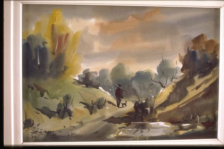 | Deskribapena: | Exposición Técnica: Acuarela Materia-soporte: Papel Fecha de ejecución: 1972 Paisaje de camino con cazador y perro de espaldas. Firmado y fechado en ángulo inferior izquierdo. |