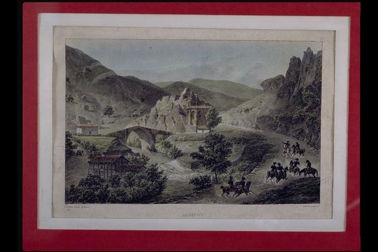 | Deskribapena: | Técnica: Litografía Materia-soporte: Papel Velin Fecha de ejecución: Siglo XIX Escena militar bandeando un río, puente y construcciones al fondo. Firmado en los ángulos inferiores. |