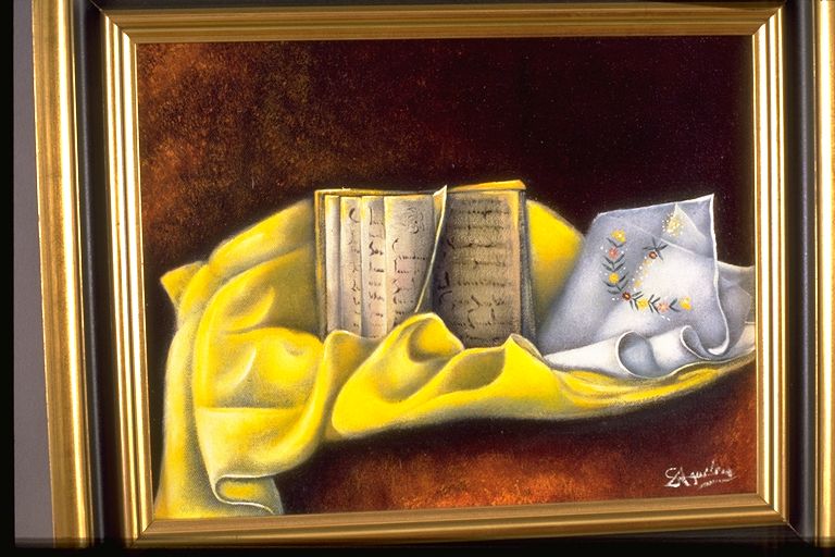 | Deskribapena: | Técnica: Óleo Materia-soporte: Lienzo Sobre un lienzo amarillo descansan un libro abierto y un pañuelo bordado. Firma ilegible en ángulo inferior derecho. |