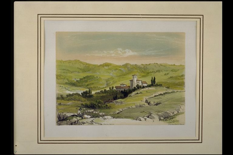 Paisaje con iglesia y pastor. Pertenece a la serie Spanish Sceneri.