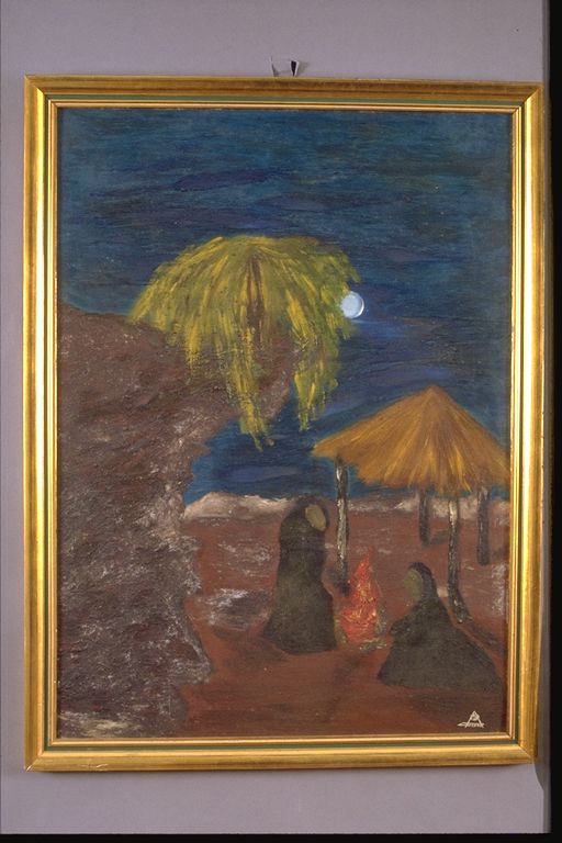| Deskribapena: | Técnica: Óleo Materia-soporte: Tablex Playa con formas humanas ante una hoguera. Firmado en ángulo inferior derecho. |