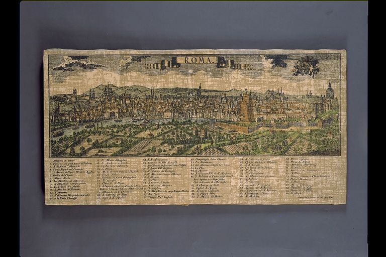 | Deskribapena: | Técnica: Litografía Materia-soporte: Lienzo Vista panorámica de Roma. Texto en la parte inferior. |