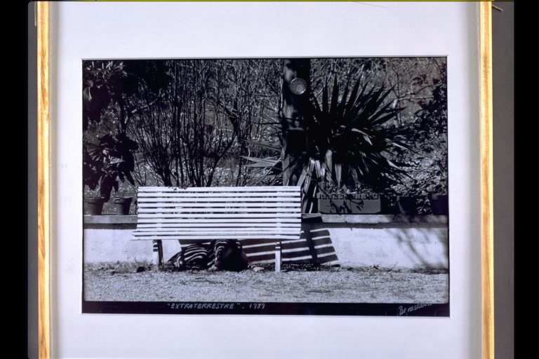 | Resumen: | Técnica: Fotografía bl. y n. Materia-soporte: Papel Fecha de ejecución: 1989 Fotografía en blanco y negro en la que se pueden ver un banco y un animal durmiendo debajo. Firmado y fechado en ángulo inferior derecho. |