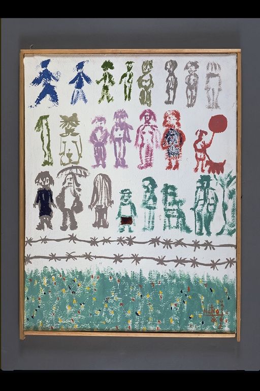 | Resumen: | Exposición Técnica: Acrílico Materia-soporte: Lienzo Fecha de ejecución: 1986. Tres filas de figuras con alambrada en la parte inferior. Firmado y fechado en ángulo inferior derecho. |