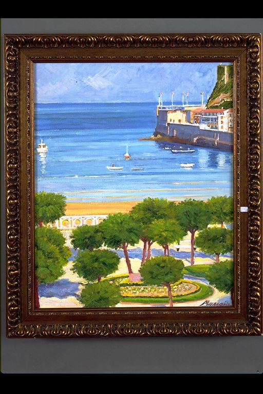 | Deskribapena: | Técnica: Óleo Materia-soporte: Lienzo El mar al fondo con parte del puerto. Firmado en ángulo inferior derecho. |