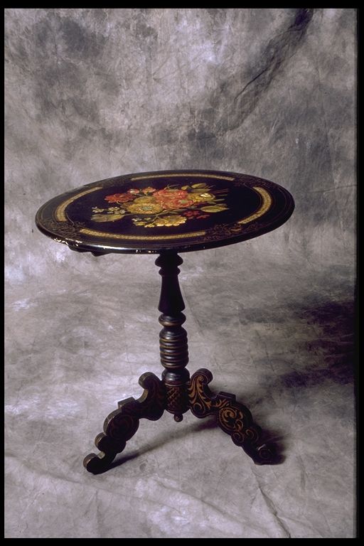 | Deskribapena: | Técnica: Ebanistería Materia-soporte: Madera Lacada Fecha de ejecución: 1800 Tapa plegable mediante sistema cerrojo, eje central torneado con tres patas. |