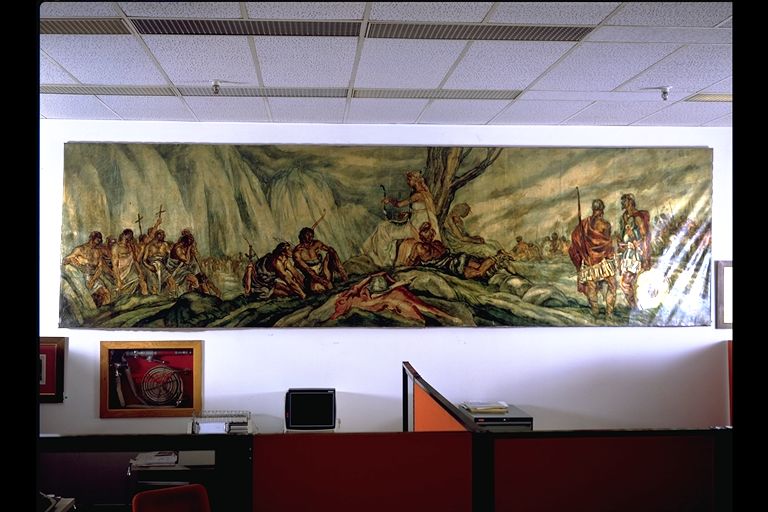 Escena alegórica procedente del vestíbulo del teatro Amaya en la Calle Paz (desaparecido). Reubicado en la Fundación Estadio de Vitoria-Gasteiz.
