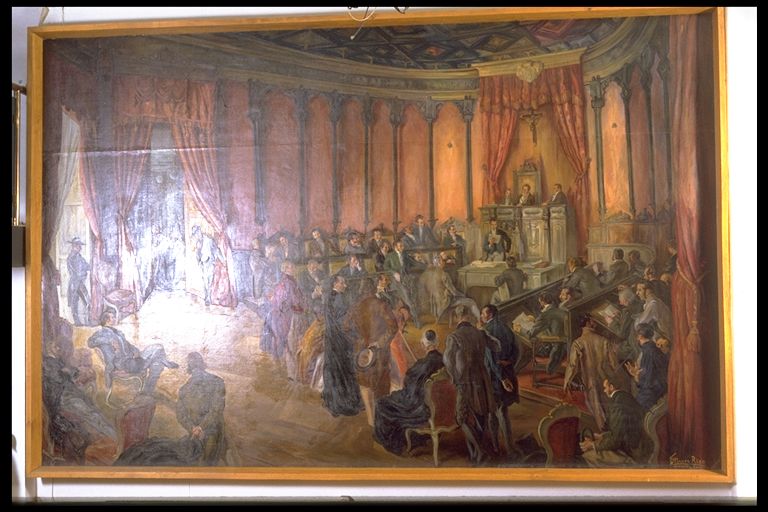 | Deskribapena: | Técnica: Óleo Materia-soporte: Lienzo Copia del original de Carlos Sáez de Tejada. Representación del Acto de la Fundación por el Ayuntamiento. Firmado en la parte inferior derecha. |