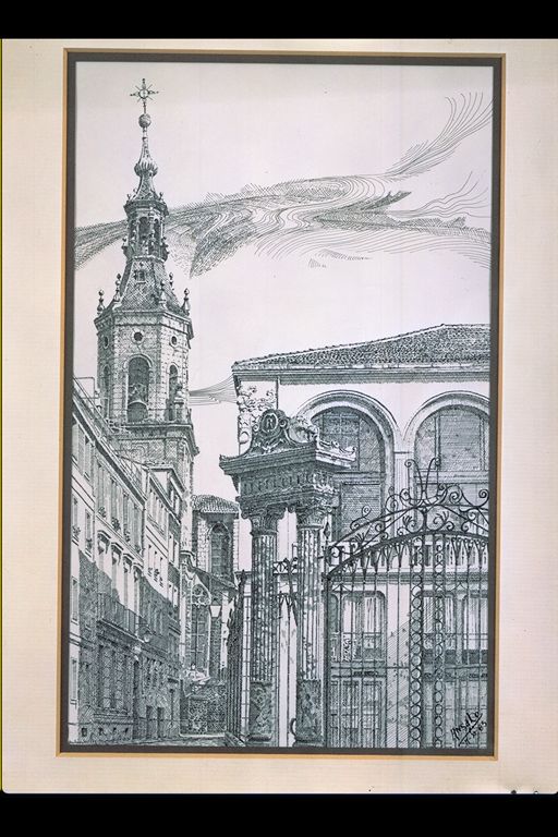 | Deskribapena: | Exposición Técnica: Tinta-Plumilla Materia-soporte: Papel Fecha de ejecución: 1983 Vista de la Calle Herrería. Firmado y fechado en ángulo inferior derecho. |