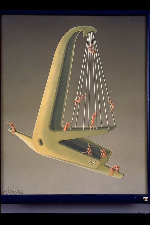 | Deskribapena: | Exposición Técnica: Óleo Materia-soporte: Lienzo-Tablex Fecha de ejecución: 1982 Obra figurativa fantástica que asemeja un grifo abierto con pequeñas figuras que trepan por sus cuerdas. Firmado en ángulo inferior izquierdo. |