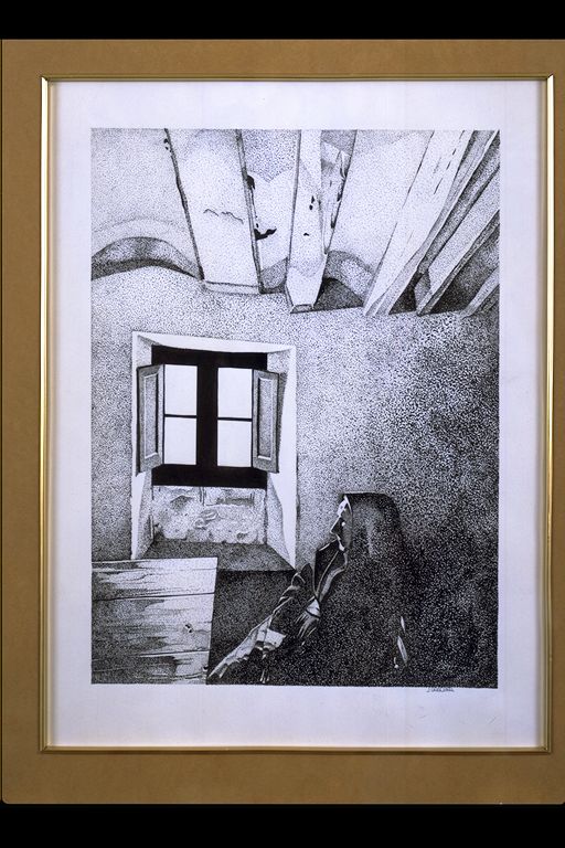 | Deskribapena: | Exposición Técnica: Tinta Materia-soporte: Papel Interior de una habitación con un ventanuco abierto, junto a la mesa, un hombre mirando al frente. Firmado en ángulo inferior derecho. |