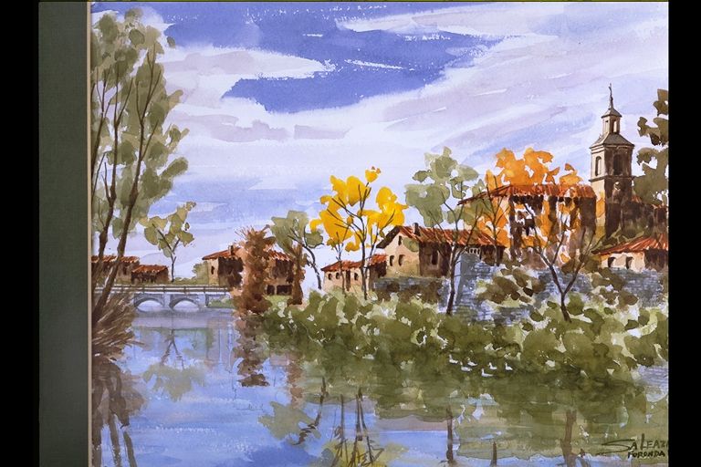 | Deskribapena: | Exposición Técnica: Acuarela Materia-soporte: Papel Fecha de ejecución: 1990 Vista del río con el puente al fondo y el pueblo a la derecha. Firmado y fechado en ángulo inferior derecho. |
