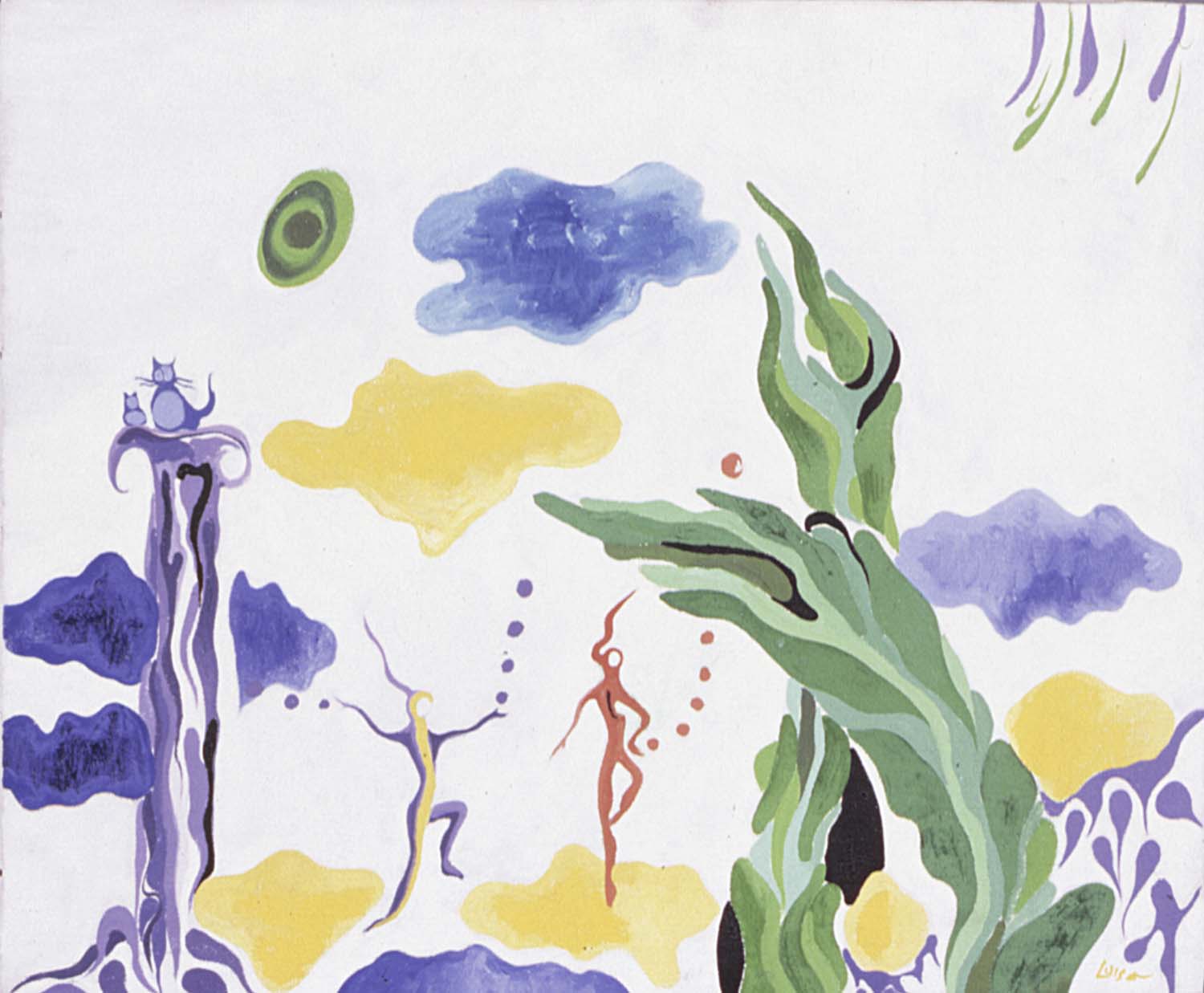 | Deskribapena: | Exposición Técnica: Óleo Materia-soporte: Lienzo Columna con dos gatos, dos danzantes, nubes y vegetación sobre fondo blanco. Firmado en ángulo inferior derecho. |