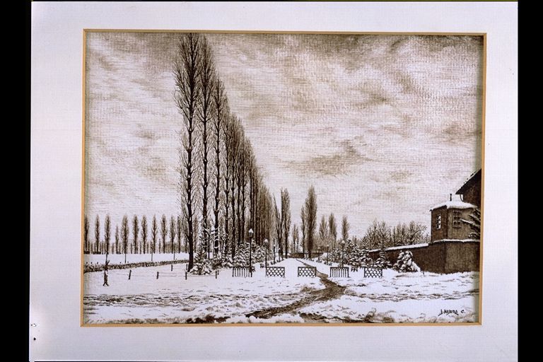 | Resumen: | Exposición Técnica: Plumilla Materia-soporte: Papel Vista nevada de la senda. Firmado en ángulo inferior derecho. |