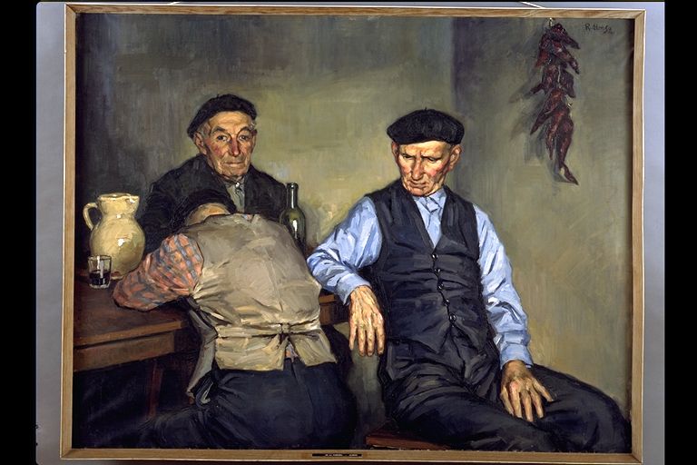 | Deskribapena: | Técnica: Óleo Materia-soporte: Lienzo Fecha de ejecución: 1961 Tres ancianos sentados en torno a una mesa con jarro, botella y vaso de vino. Firmado en ángulo superior derecho. |