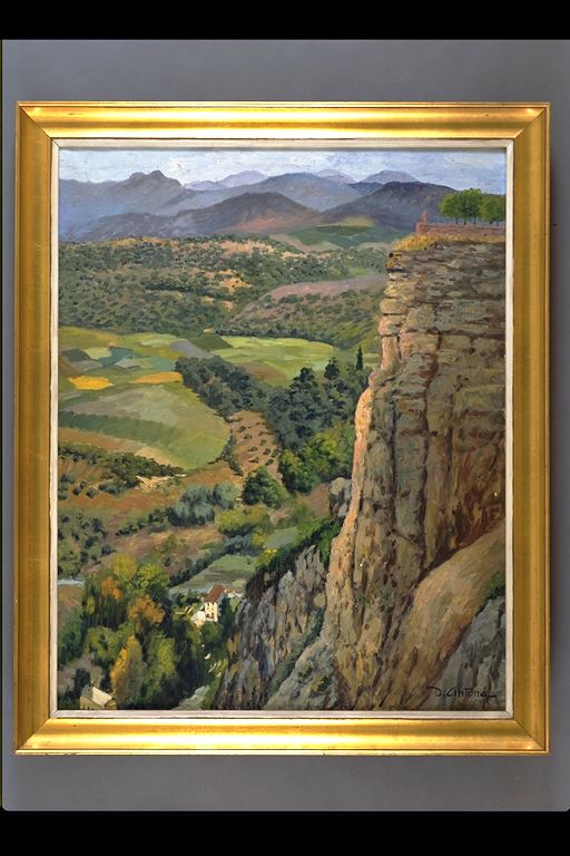 | Deskribapena: | Técnica: Óleo Materia-soporte: Lienzo Paisaje, vista desde un acantilado rocoso del valle y de las montañas. Firmado en ángulo inferior derecho. |