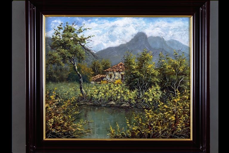 | Deskribapena: | Exposición Técnica: Óleo Materia-soporte: Lienzo Paisaje con río, árboles, caserío y montañas al fondo. Firmado en ángulo inferior izquierdo. |