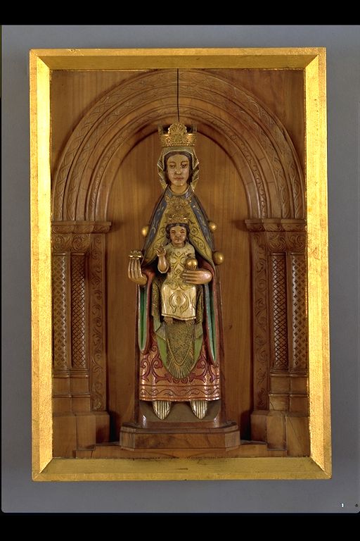 Alto relieve de la imagen con arco románico policromado de factura actual.