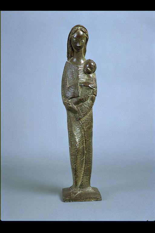 | Deskribapena: | Técnica: Bronce Materia-soporte: Bronce Escultura de la Virgen María con el Niño en su regazo. Firmado en base inferior. |