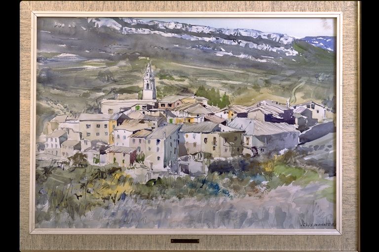| Deskribapena: | Exposición Técnica: Acuarela Materia-soporte: Papel Fecha de ejecución: 1982 Vista del pueblo y su muralla. Firmado y fechado en ángulo inferior derecho. |