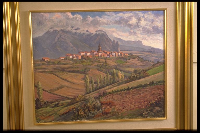 | Deskribapena: | Exposición Técnica: Óleo Materia-soporte: Lienzo Paisaje rural del pueblo y la montaña al fondo. Firmado en ángulo inferior izquierdo. |