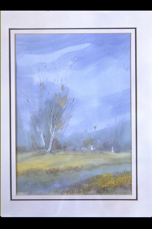 | Deskribapena: | Técnica: Acuarela Materia-soporte: Papel Río limitado por un prado en el que hay árboles sin hojas. Firmado en ángulo inferior derecho. |
