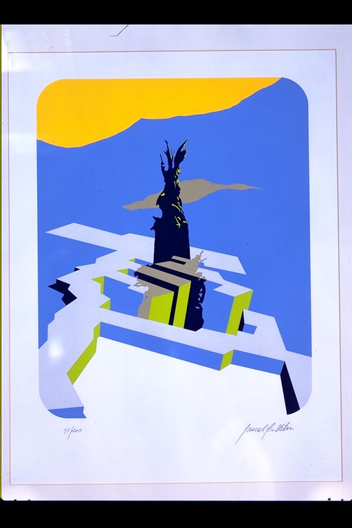 | Resumen: | Técnica: Serigrafía Materia-soporte: Papel Virgen Blanca, de unas esculturas geométricas emerge la escultura en conmemoración de la Batalla de Vitoria. Firmado en ángulo inferior derecho. |