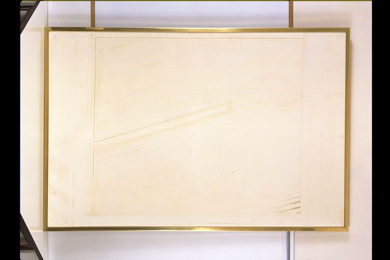 | Deskribapena: | Certamen Arte Alavés. 1982. Primer premio. Técnica: acrílico Materia-soporte: lienzo Fecha de ejecución: 1982 Podemos situar la composición de esta pintura dentro de una abstracción apoyado en formas geométricas minimalistas lineales. Su coloración totalmente blanca permite el destaque sutil de dichas líneas. De tal manera que el cuadro presenta la belleza que aporta el tono blanco referida a la limpieza, pureza y simplicidad cromática. |