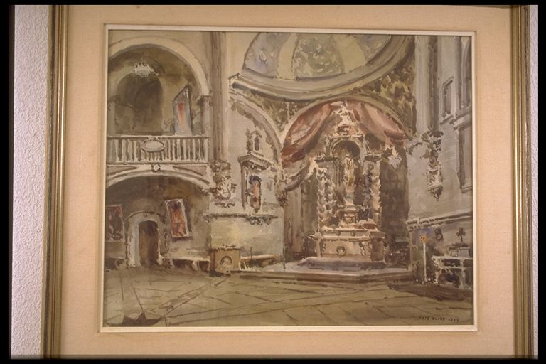 | Deskribapena: | Exposición Técnica: Acuarela Materia-soporte: Papel Fecha de ejecución: 1977 Interior de la iglesia, mostrando la capilla. Firmado y fechado en ángulo inferior derecho. |