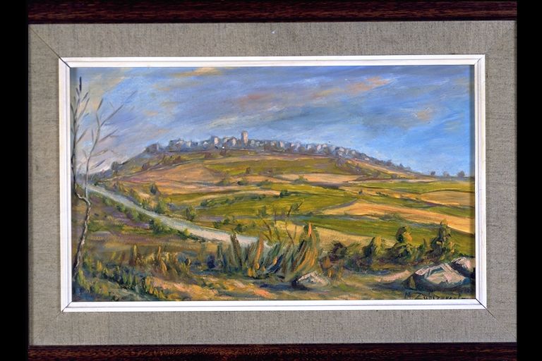 | Deskribapena: | Exposición Técnica: Óleo Materia-soporte: Tablex Paisaje con población en lo alto de un montículo. Firmado en ángulo inferior derecho. |