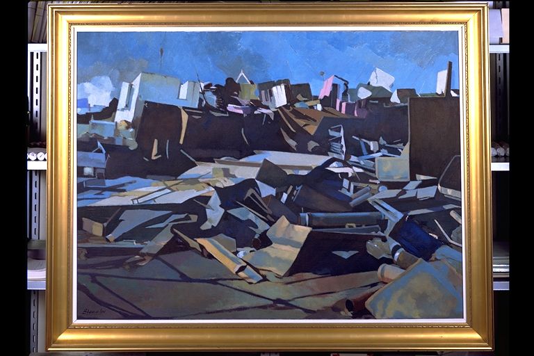 | Resumen: | Certamen Bienal Plástica Técnica: Óleo Materia-soporte: Lienzo Fecha de ejecución: 1978 Las formas geométricas amontonadas que se observan en la representación de este paisaje, lo alejan de la concepción tradicional de su composición. El artista supera la concepción representativa clásica para inducirnos a ideas o conceptos modernos sobre la destrucción, deshumanización y la miseria de ciertas actuaciones en la naturaleza como signo de una época actual. Firmado en ángulo inferior izquierdo. |